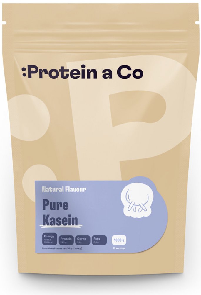 Protein&Co. 1000 g kaseinové a noční práškové 24.3 g 30.0 g 33 ks 108.0 kcal micelární kasein 10.0 g/100 ml