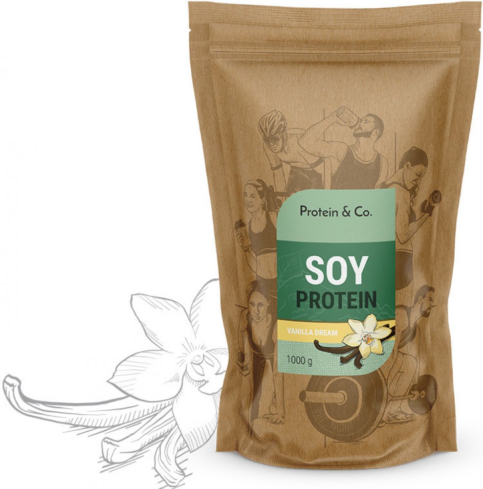 Protein&Co. 1000 g sojové práškové 25.2 g 30.0 g 33 ks 109.0 kcal sukralóza, aroma sojový protein izolát, aroma, sůl 7.5 g/100 ml