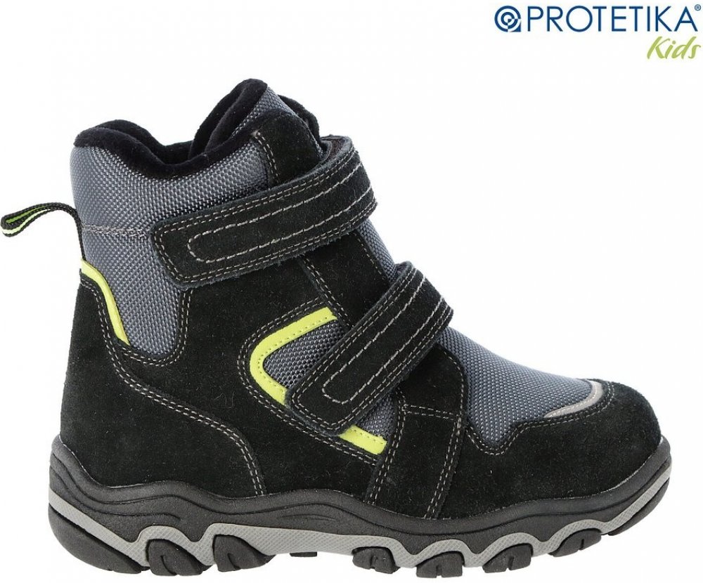 Chlapecká zimní obuv od slovenské firmy Protetika se zapínáním na suché zipy. Obuv s membránou Pro-tex udržuje nohu v teple a suchu, odpuzuje vodu a je prodyšná.TEX membrána je ultratenká vrstva mezi vnějším materiálem boty a koženou nebo vlněnou podšívkou v jejím nitru. Membrána je z vnější strany vodoodpudivá, ale umožňuje únik vlhkosti v opačném směru, tedy z chodidla přes membránu ven. Výsledkem je prodyšnost a zdravé klima chodidel.Svršek: nepromokavá textilie a přírodní kůže. Uvnitř je obuv zateplená umělou kožešinou. Pevný opatek. Vyjímatelná textilní stélka s podporou klenby. Protiskluzová podešev.Délka stélky: vel.27- 178mm, vel.28- 186mm, vel.29- 192mm, vel.30- 200mm, vel.31- 206mm, vel.32- 212mm, vel.33- 218mm, vel.34- 226mm, vel.35- 232mm.Obuv je určena na normální a širší nohu.Péče o boty:obuv je vhodné vysušit, pod membránou se často sráží vlhkost po vyzutí. Očistěte vlhkým hadříkem. Po té na suchou a čistou obuv aplikujte impregnační sprej vhodný na obuv s membránou. Nesušit přímo u zdroje tepl