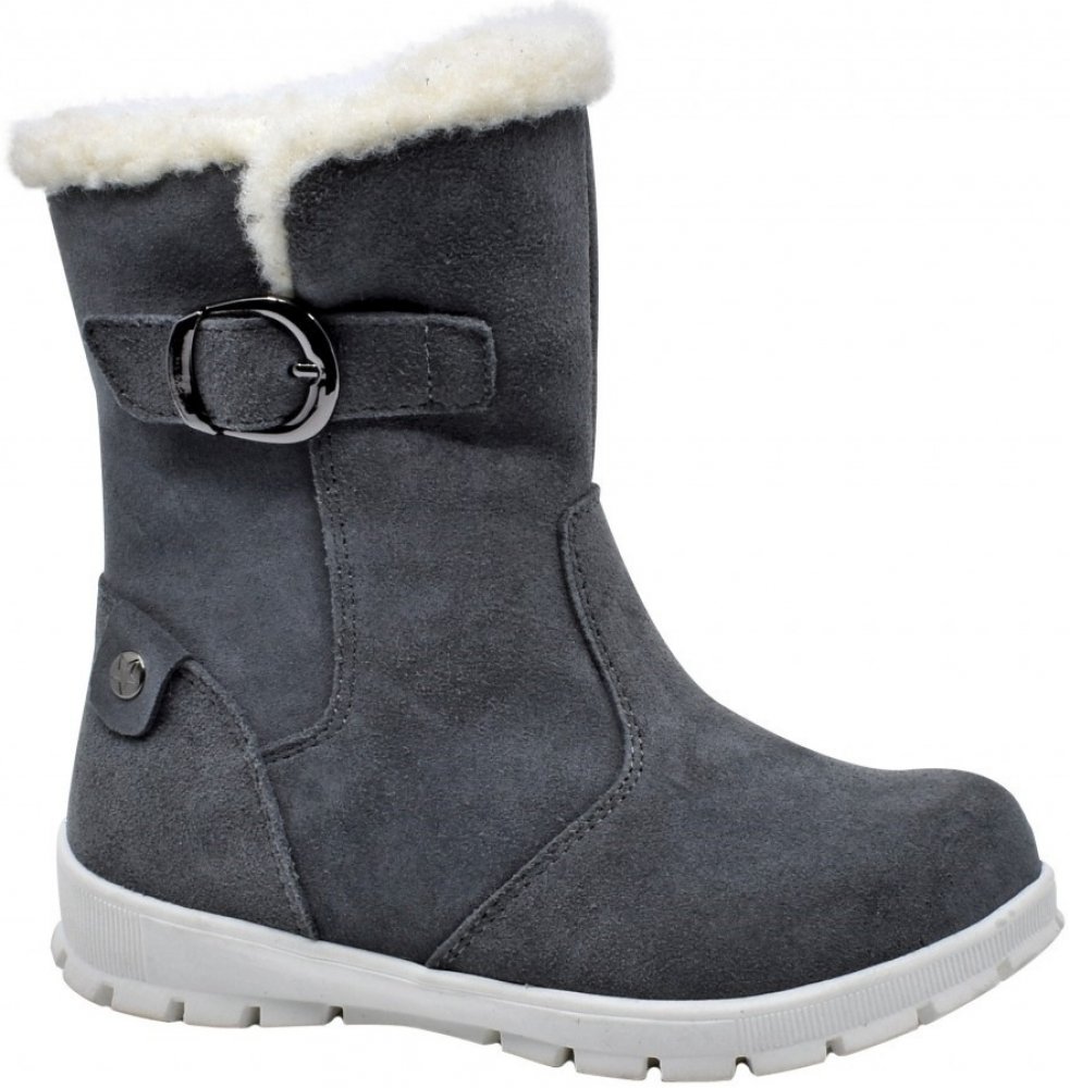 Kozačky vyrobené z broušené kůže. Gumová podrážka. Vnitřní prostor boty zatepluje jemný, umělý kožíšek.