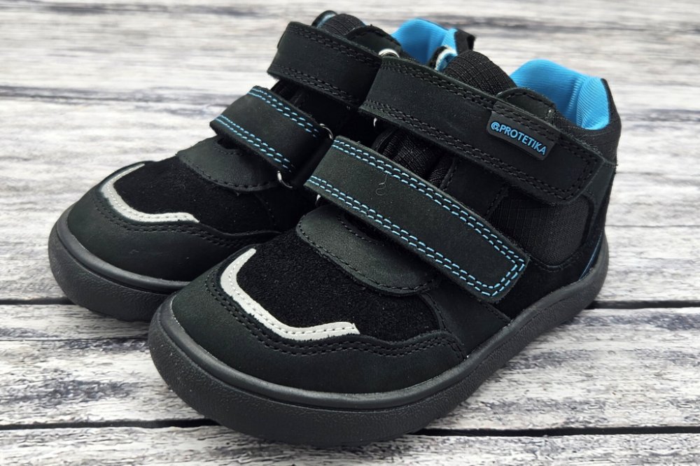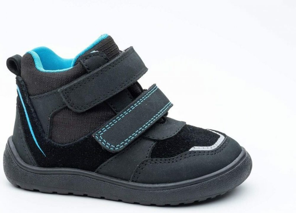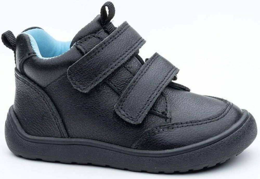 Protetika chlapecké barefoot boty DERIL BLACK | celoroční dětská obuv na suchý zip | černé kotníkové kožené boty bez klenby s flexibilní podrážkou Chlapecká Barefoot Obuv Deril Black