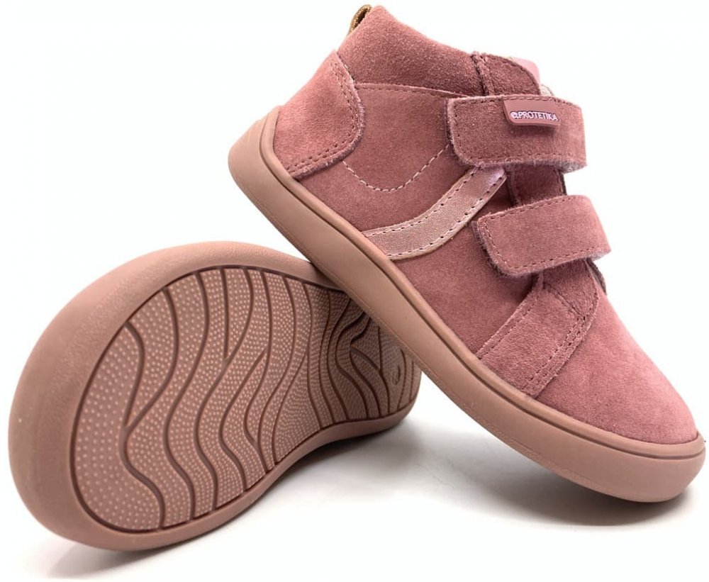 Protetika Darta Old pink jsou dívčí barefoot boty z broušené kůže - veluru, který je odolnější vůči poškrábaní než hladká kůže. Je to zcela nový model pro podzim 2023 na nové podrážce (byla už na jarních modech 2023) a má tím i nový tvar, než starší modely. Oproti starším modelům jsou mírně širší v přední části a užší v patě - sednou na jiný typ nohy než boty na staré podrážce.Všechny podzimní mod...