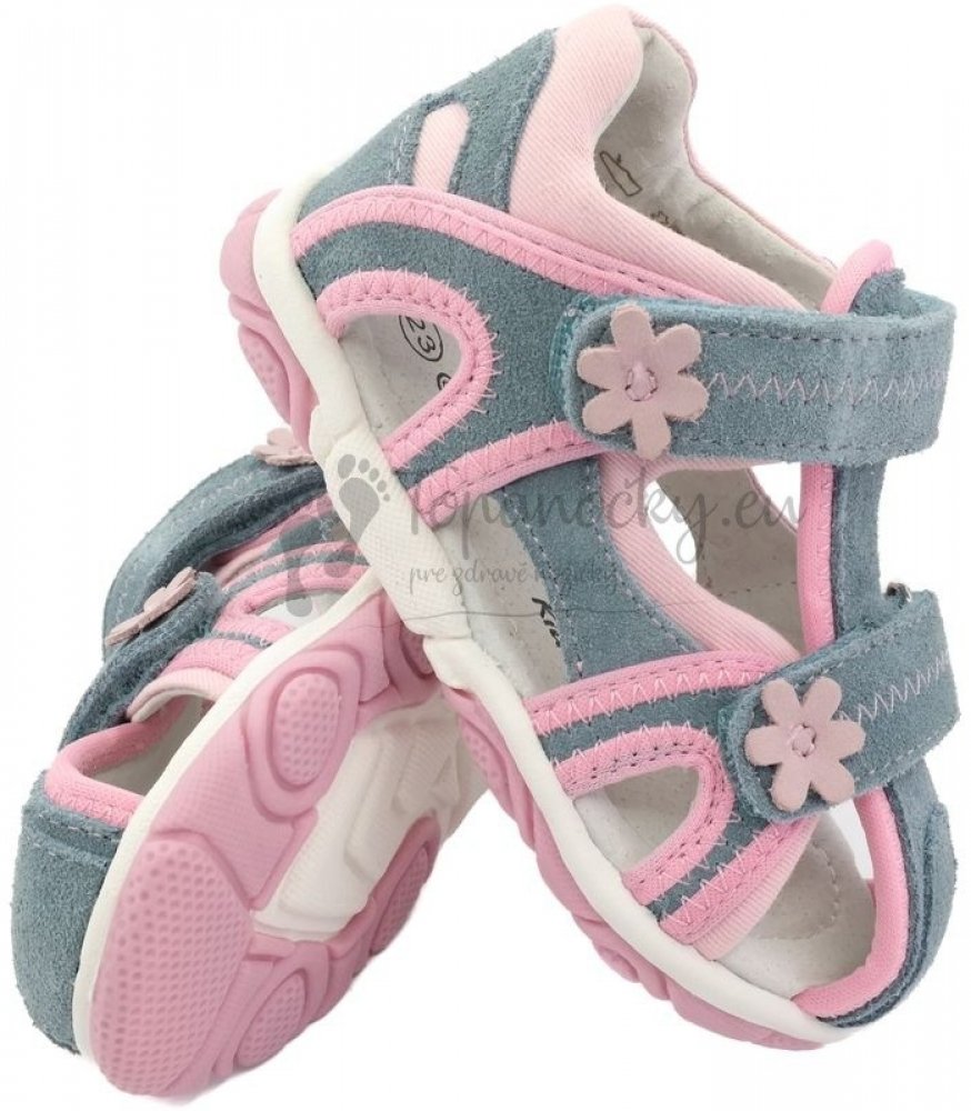 Sandálky z broušené kůže od značky Protetika mají zapínání na dva suché zipy, lze je tedy perfektně přizpůsobit na dětskou nožičku. Kožená stélka je mírně tvarovaná, příjemně měkká a tlumí tak nárazy, pevný opatek. Krytá špička chrání dětské prstíky proti okopání. Samozřejmostí je použití atestovaných přírodních materiálů a zdravotní nezávadnost obuvi.