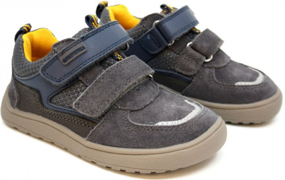 Novinka! Chlapecké barefoot jarní boty s voděodolnou membránou. Jsou vyrobeny z broušené kůže v kombinaci s kvalitním textilním materiálem. Membrána PROTEX účinně chrání nohy před deštěm a vlhko. Uvnitř mají netvarovanou, vyjímatelnou koženou stélku. Nad podpatkem mají měkký límeček. Suché zipy pevně fixují botu na noze. Kulatá podešev má jemný protiskluzový dezén, je odolná, ale velmi ohebná.