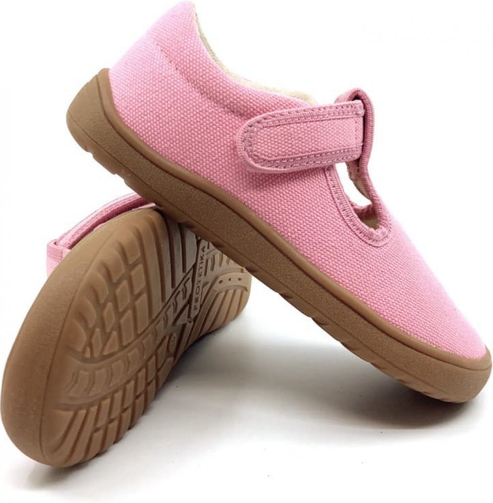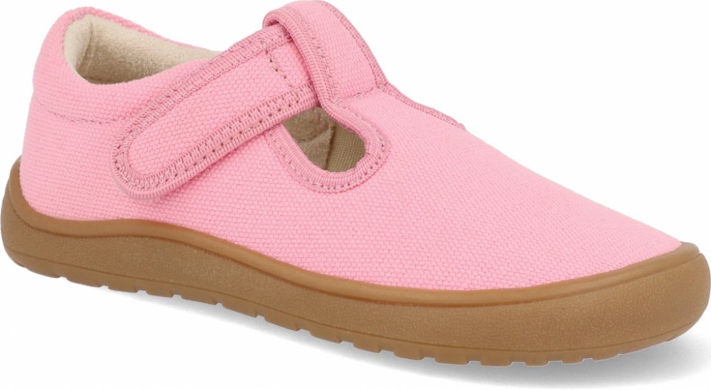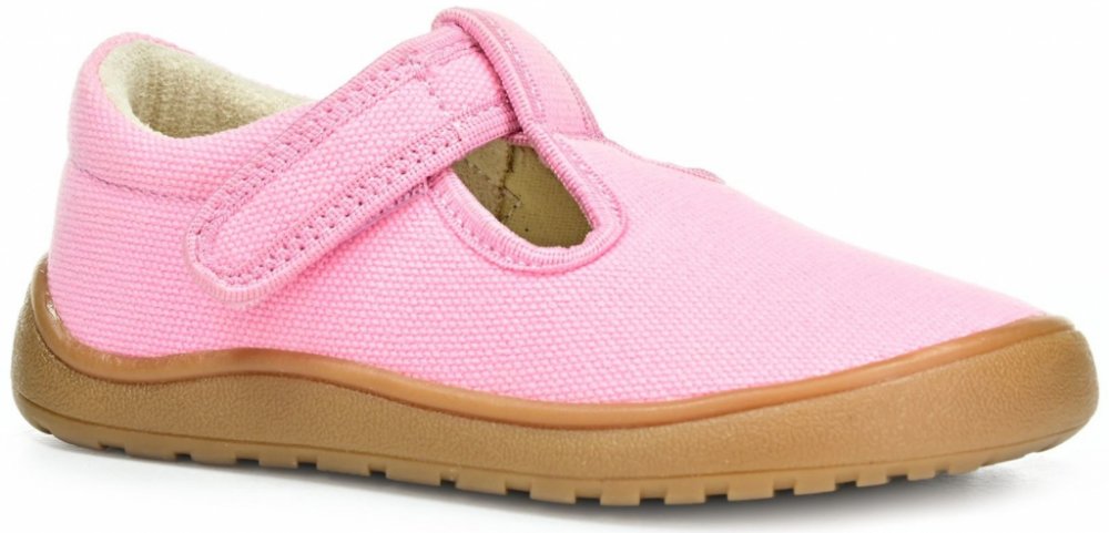 Dívčí barefoot jarní plátěnky vhodné i jako přezůvky. Jsou vyrobeny z kvalitního textilu v pink růžové barvě. Dva suché zipy pevně fixují botu na noze. Uvnitř mají netvarovanou, vyjímatelnou stélku. Kulatá podešev má jemný protiskluzový dezén, je odolná, ale velmi ohebná.