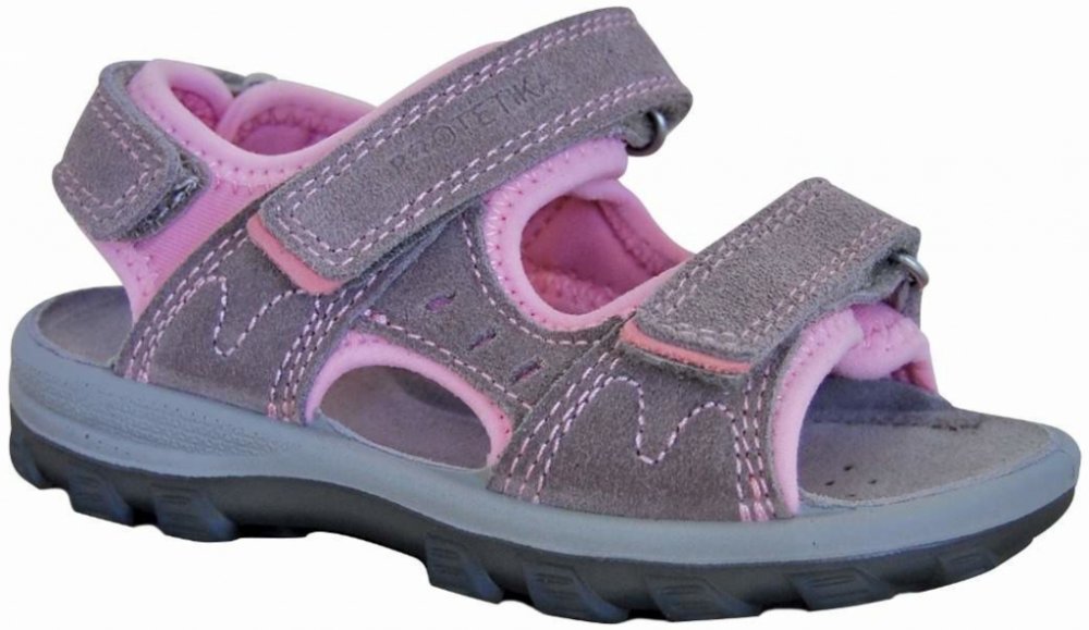Dětské zdravotní sandály značky Protetika regulovatelné zapínáním na dva suché zipy. Sandály jsou vypolstrované a mají koženou stélku s podporou klenby.