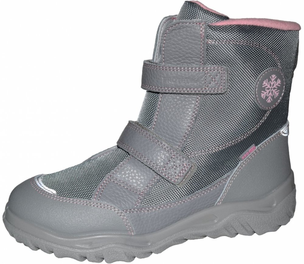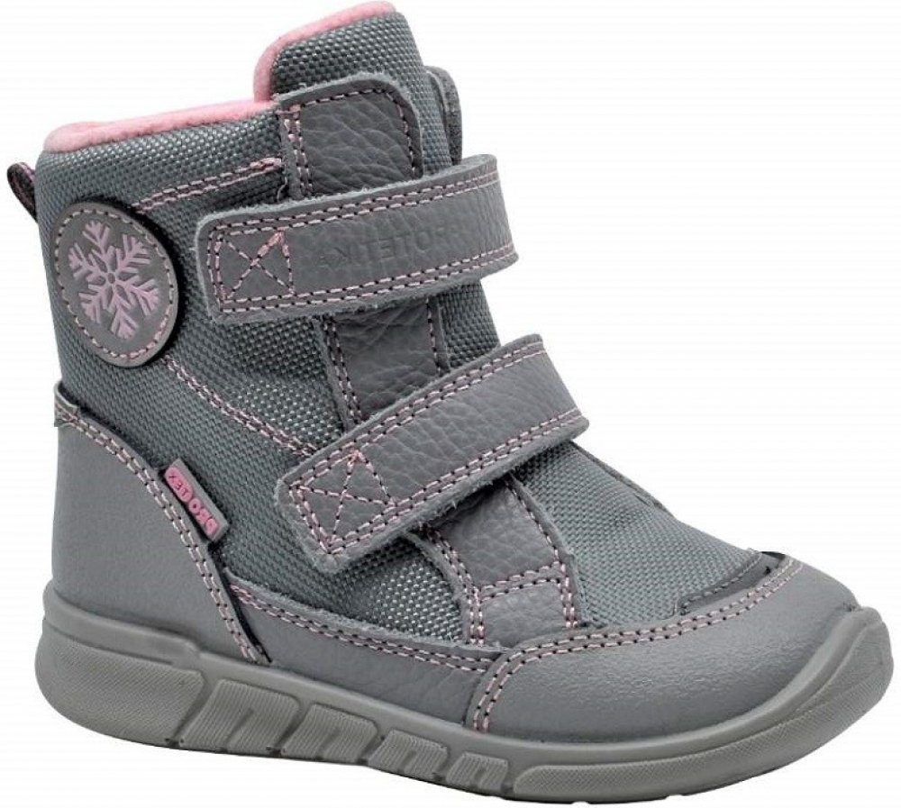 Zimní obuv od slovenské firmy PROTETIKA na suchý zip. Svršek kombinace kůže, textil. Uvnitř zateplené. Pevný opatek, vyvýšená podešev zabraňuje okopání. Vyjímatelná anatomicky tvarovaná stélka. Protiskluzová podrážka. Obuv je určená pro normální nohu. Délka vnitř.stélky- vel.24- 154mm, vel.25- 160mm, vel.26- 166mm, vel.27- 174mm, vel.28- 180mm, vel.29- 188mm, vel.30- 194mm.