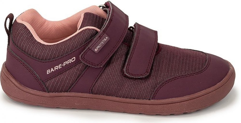 Dívčí barefoot tenisky v bordó barvě jsou vyrobeny z kombinace kůže a prodyšného textilu. Membrána PROTEX účinně chrání nohy před deštěm a vlhkostí. Dva suché zipy pevně fixují botu na noze. Uvnitř se nachází netvarovaná vyjímatelná stélka. Prostorná špička je dostatečně vhodná pro širší nohu. Kulatá podrážka je protiskluzová, odolná, ale velmi pružná. V oblasti paty jsou mírně vyztužené a mají pr...