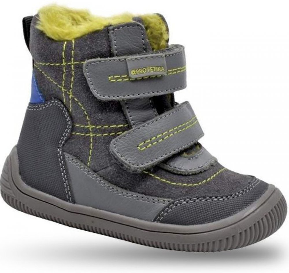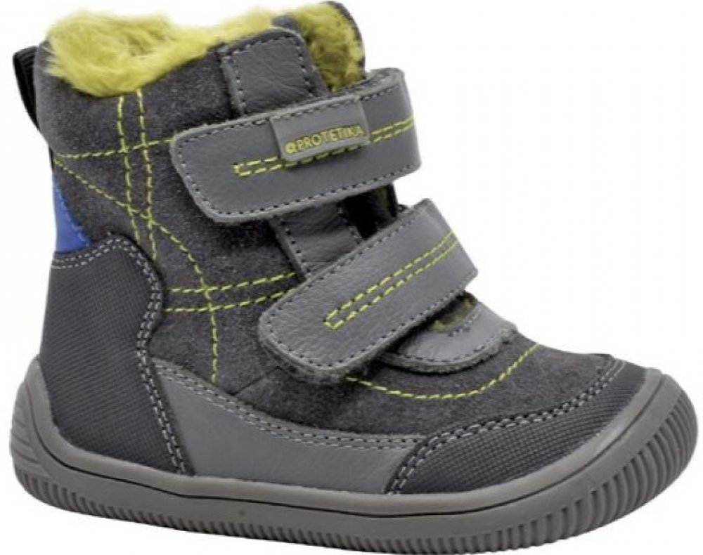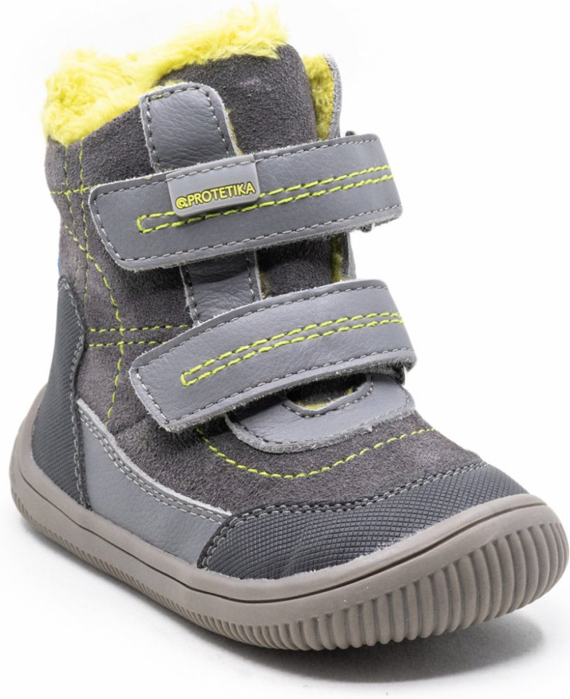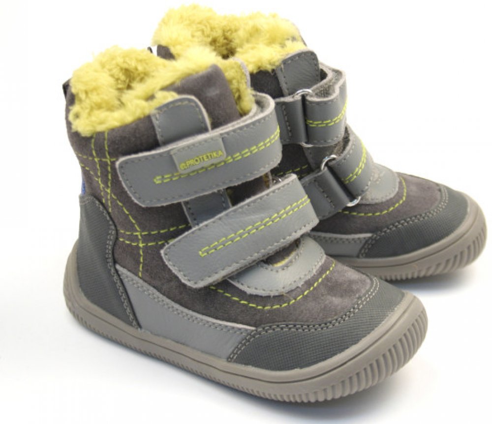 Pohodlné kožené barefoot zimní botky RAMOS GREY pro kluky. Vhodné pro každodenní nošení. Svršek obuvi tvoří kombinace hladké a broušené kůže spolu se syntetickým materiálem na špici a patě. Obuv je zateplená umělým kožíškem. Anatomicky tvarovaná vyjímatelná fleecová stélka bez podpory klenby. Flexibilní podešev podporující přirozenou valivost chodidla. Zvýšený okop na špičce boty chrání obuv před poškozením. Zapínání na suchý zip. Použité atestované přírodní materiály zabezpečují zdravotní nezávadnost…