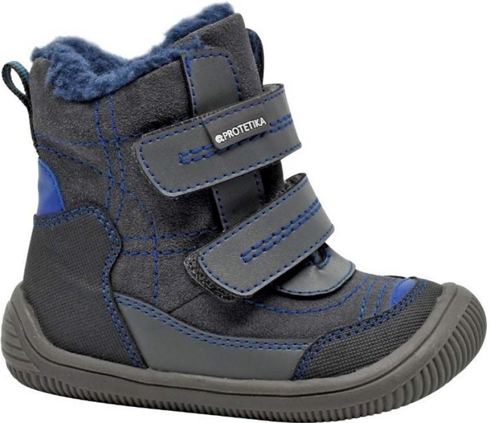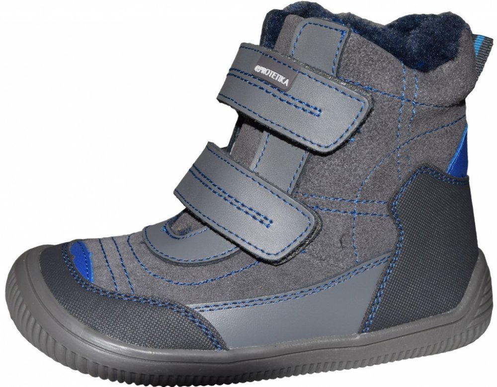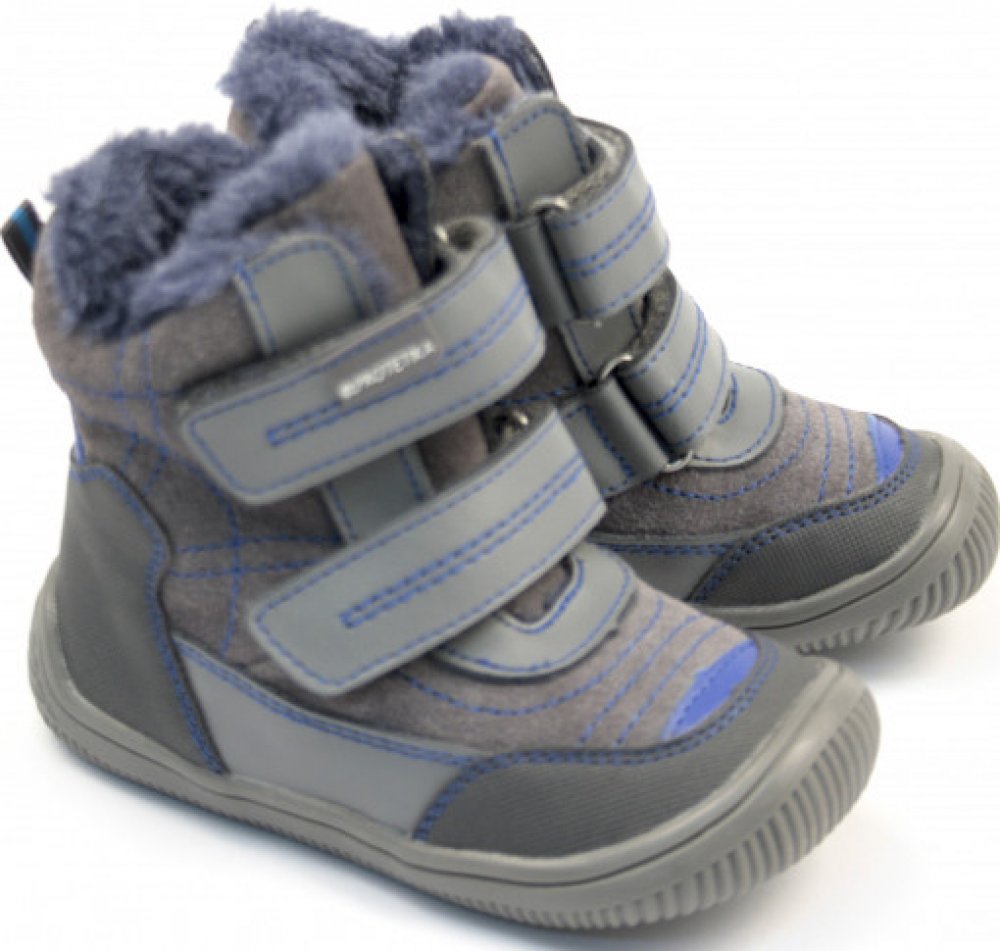 Pohodlné kožené barefoot zimní botky Ramos pro kluky. Vhodné pro každodenní nošení. Svršek obuvi tvoří kombinace hladké a broušené kůže spolu se syntetickým materiálem na špici a patě. Obuv je zateplená umělým kožíškem. Anatomicky tvarovaná vyjímatelná fleecová stélka bez podpory klenby. Flexibilní podešev podporující přirozenou valivost chodidla. Zvýšený okop na špičce boty chrání obuv před poško...