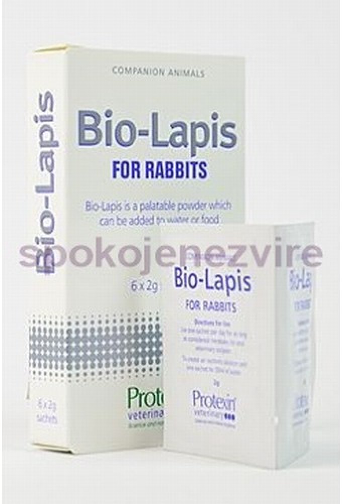 Bio-Lapis je doplňkové krmivo, které pomáhá při zažívacích problémech a krizových stavech u králíků, psů, koček a jiných společenských zvířat. Obsahuje probiotikum, prebiotikum, elektrolyty, enzymy a vitamíny.