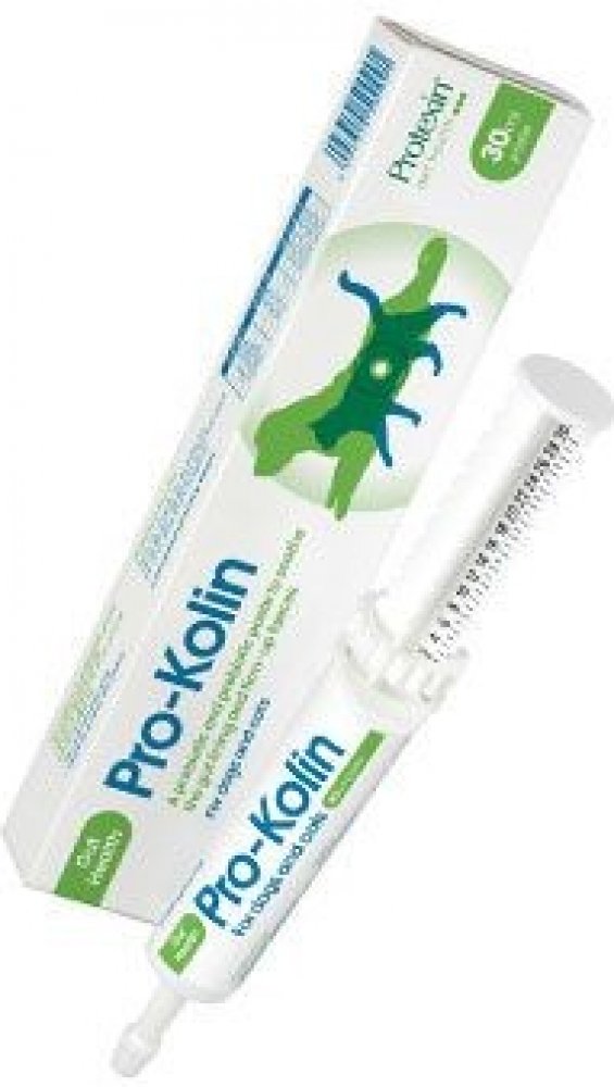 PRO-KOLIN pro psy a kočky je probiotický preparát s výbornou chutí, dobře přijímaný zvířaty, obsahující kaolin a pektin, jejichž absorpční a zklidňující vlastnosti jsou používány už léta pro léčbu průjmů. Prospěšné mikroorganismy obsažené v přípravku Pro-Kolin se vyskytují přirozeně ve střevech všech zdravých zvířat. Tyto mikroorganismy kolonizují nedospělé střevo nebo znovu osidlují a upravují poměry ve střevě narušeném. Zároveň brání usídlení patogenních mikroorganismů mechanismem který se popisuje jako „kompetitivní exkluze“. Tento produkt obsahuje navíc kaolin jako přírodní vyvazující substanci a pektin, který zklidňuje střevní výstelku během trávících poruch. Pro-Kolin pro psy a kočky byl vyvinut jako léčivo první volby během mírnějších forem enteritid.