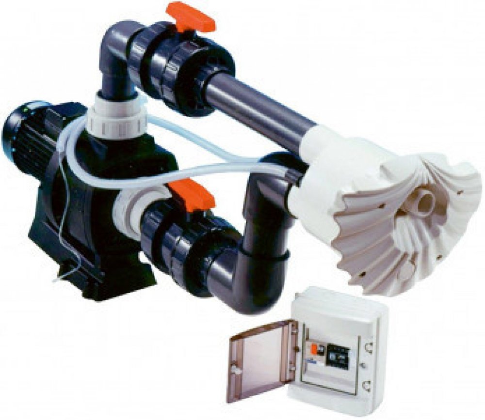 Vestavěný protiproud zařízení K-JET - Tento vestavný protiproud je předpřipraven k velmi snadné instalaci. V zařízení je možno regulovat intenzitu proudu vody a přisávání vzduchu, to vše na trysce o průměru 40 mm, která je též směrově nastavitelná. Tato tryska je spolu se sáním a pneumatickým spínačem v čelním krytu zařízení. Kompletní protiproudé zařízení K-JET obsahuje: