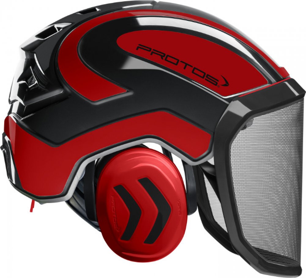 Nová revoluční pracovní přilba, která je určena pro práce v lese, práce s motorovou pilou, pro stromolezce a arboristy. Protos Forest je vhodná zejména pro kácení. Je lehká, pohodlná a velice komfortní. Všechny součásti ochrany hlavy jsou integrovány do přilby, od štítu až po ochranná sluchátka a nehrozí tak jakékoliv zadrhnutí či uvíznutí ve větvích. Velikost přilby je univerzální a dá se snadno nastavít. Protos® Integral Forest je certifikován podle EN 397, EN 352-3 a EN 1731.Dodává se štítem G16 s hustotou otvorů 16/cm2