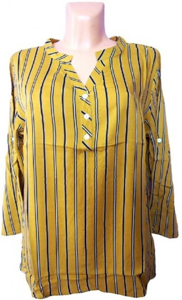 Elegantní a nestárnoucí proužky dají vyniknout této dámské košili. Košile má jednoduchý límeček, přední díl zdobený knoflíčky, rukávy jsou nastavitelné pomocí pásku na tříčtvrteční velikost. Je vyrobena z lehoučkého materiálu a má rovný střih.