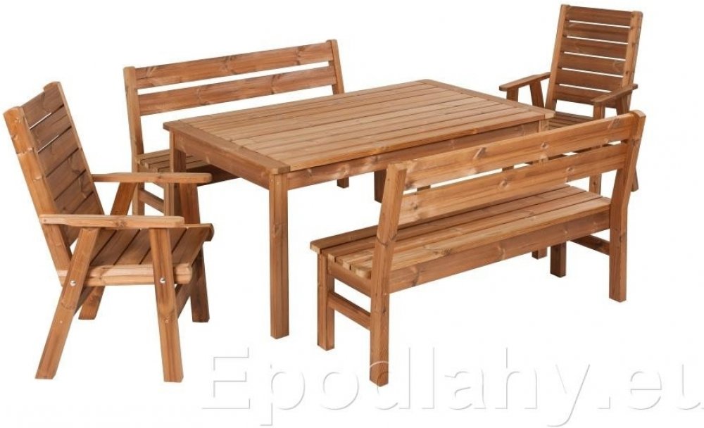 Prokom R & S 96 kg jídelní sestavy dřevěné 6 s obdélníkovým stolem náročnější údržba stůl + 2 křesla + 2 lavice olejování 100 cm 167 cm 76 cm 66 cm 110 cm