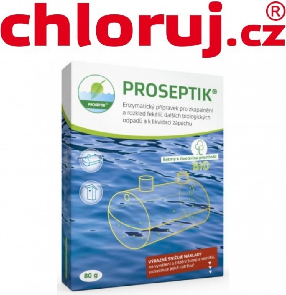 ŽUMPY, SEPTIKY, SUCHÉ ZÁCHODY, CHEMICKÉ TOALETY, ODPADNÍ POTRUBÍ Přídavkem prostředku PROSEPTIK, který obsahuje enzymy rozkládající tuky, škroby a bílkoviny, se vytvářejí příznivé podmínky pro dosažení dlouhodobé přirozené rovnováhy s převahou příznivě působících mikroorganismů, které dokáží rozkládat biologické odpady na vodu a oxid uhličitý bez vzniku nežádoucích zápachů a usazenin. PROSEPTIK přispívá ke snižování BSK odpadní vody. Na rozdíl od obdobných biologicky aktivních prostředků PROSEPTIK neobsahuje živé bakterie, je proto mnohem déle skladovatelný bez významnější ztráty účinnosti.