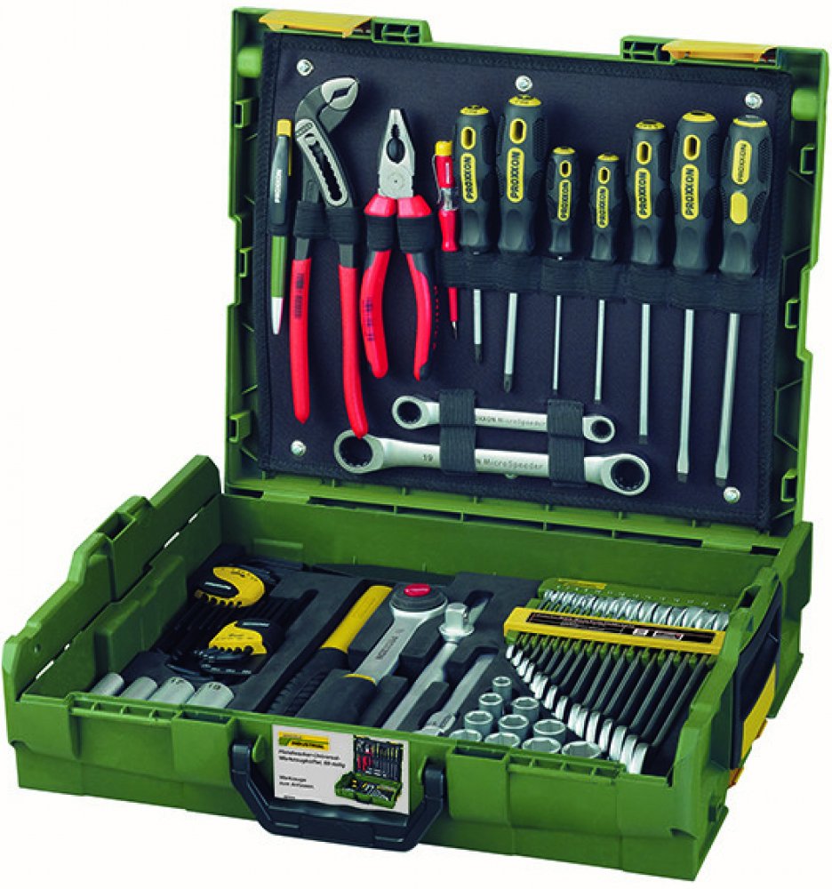 * Hlavice jsou vykované z oceli 31CrV. Vysoký obsah uhlíku, zaručuje velkou tvrdost. Hluboký vnitřní šestihran má v celém profilu přesný rozměr, což zajistí, že vysouvání matic nedělá problémy. Tenké stěny hlavic usnadňují těžkou práci na nepřístupných místech. Skosení horní hrany ulehčuje nasazení na hlavu šroubu. Ve čtyřhranu jsou vyfrézované drážky, zabezpečující pevné uchycení na ráčně. Hlavice od velikosti 19mm mají odlehčené konce umožňující lepší manipulaci. Hlavice jsou dvakrát niklované a jednou matně chromované. Díky přesným hlavicím Proxxon je kroutící moment přenášen na boky hlav šroubu a matice, nikoliv na jejich hrany, nedochází k jejich poškození i přes vyvíjení velké síly. Šrouby a matice tak snadno povolíte opakovaně. Hlavice jsou značeny laserem, nikoliv ražením nebo nekvalitními popisky.SlimLine očkoploché klíče jsou vyrobené z CrV oceli, tvrzené a zušlechtěné dvěma finálními vrstvami niklu a vrstvou matného chromu| jsou vyrobené dle DIN 3113 a ISO 3318. Očko je vyhnuté o 15 stupňů. Hlava klíče je leštěná. Klíče SlimLine jsou specifické svým tenkým a štíhlým tělem, přičemž utahovací momenty převyšují požadavky předpisů DIN/ISO. Rozměry jednotlivých klíčů jsou laserově značeny. Přesnost každého klíče je kalibrována a přísně kontrolována díky čemuž klíče SlimLine zdaleka převyšují normy přesnosti DIN/ISO. * Flex-Dot šroubováky mají speciálně vyvinutý ergonomický tvar pro pohodlnou práci -zaoblená, dvouplastová rukojeť s výstupky „FLEX-DOT®“ nezpůsobuje otlaky a bolest přidlouhodobější práci. Dobrá přilnavost rukojeti při rychlém šroubování. Umožňuje vysoké krouticí momenty a přítlačnou sílu, jsou vhodné pro horizontální i vertikální použití. Zřetelné laserem označování velikostí na matně pochromovaných dřících z chrom-křemík-manganmolybdenové oceli.Standardní ráčna 1/2" s reverzním integrovaným přepínačem do ráčnového mechanismu. Pro přenos velkého utahovacího momentu při utahování je v akci vždy současně několik ze 52 zubů ráčny. Tlačítko pro rychlé uvolnění hlavice. Hlava a tělo je vykováno z jednoho kusu CrV oceli. Povrch je chráněn dvojitou vrstvou chromu. Rukojeť je z neoprénu, odolného oleji a kyselinám a má praktický otvor, umožňující zavěšení. Prokázaných více než 100 000 pracovních cyklů. ➤ Balení * 1ks.