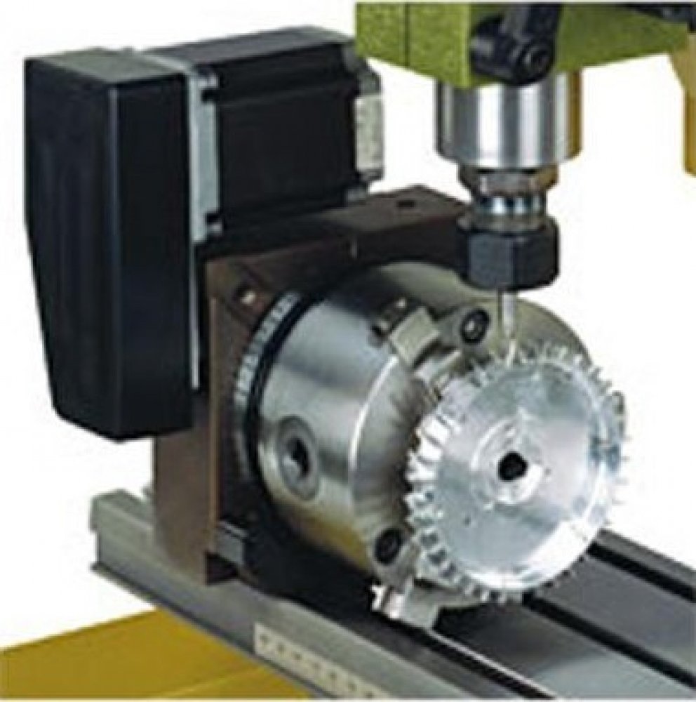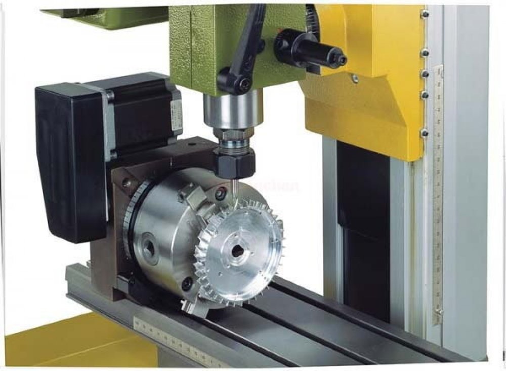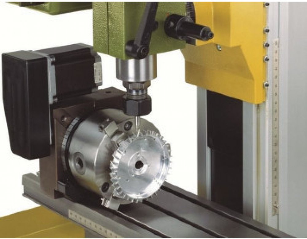 Hlavní vřeteno se 14 mm vrtáním a přírubou je kompatibilní s čelními deskami a všechny soustružnické sklíčidla ze soustruhu PD 400. Precizní ovládání úhlů počítačem zajišťuje nejmenší přírůstek 0,003 °, což je ideální pro detailní a přesnou výrobu.