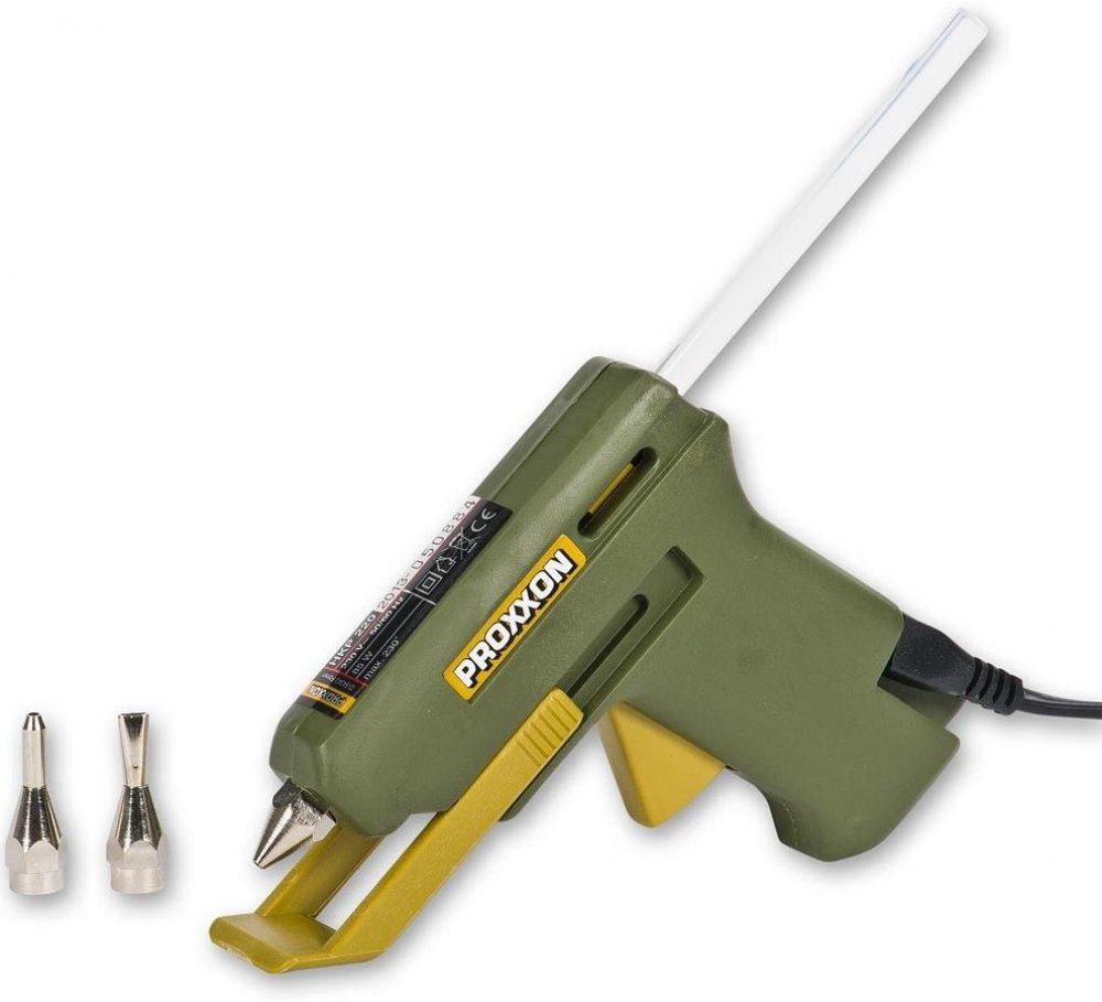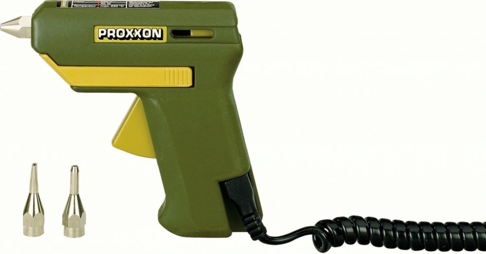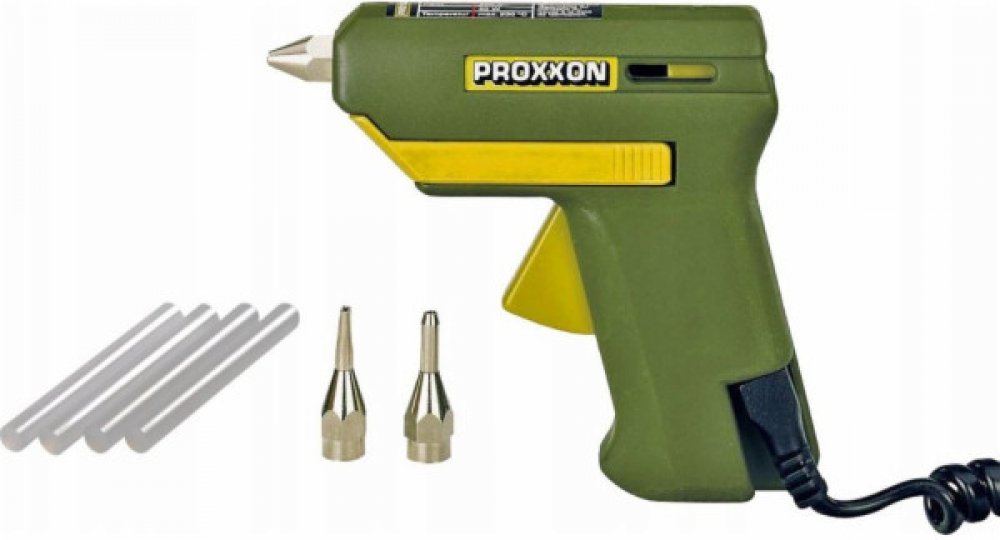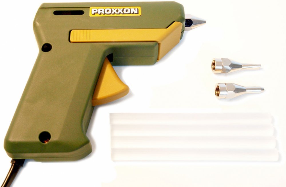 •K pistoli patří čtyři tyčinky lepidla 7 x 100 mm a tři vyměnitelné trysky.