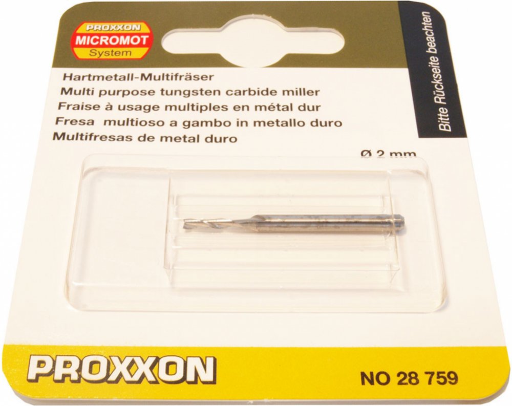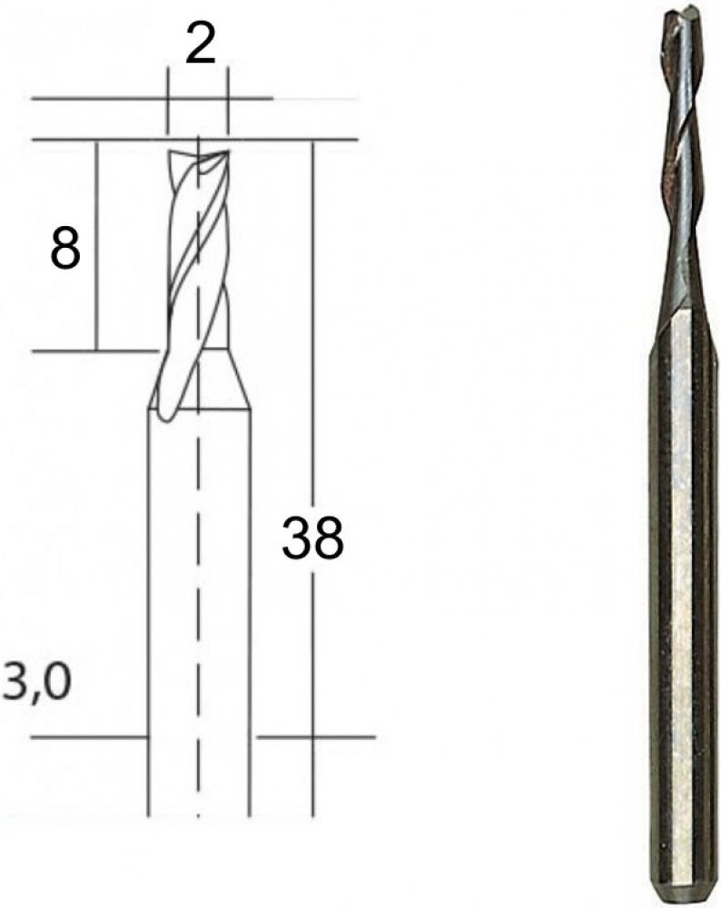 * Tvrdokovová spirálová fréza - 2mm * Nástavce pro MICROMOT vrtací a frézovací systémy v průmyslové a dentální kvalitě. * Tvrdokovové frézy jsou vyrobeny z tvrdokovu odolného proti opotřebení. Na frézování bez vibrací s vysokou rozměrovou přesností. Obrobky musí být dobře upevněné, aby nedošlo k poškození. Na opracování oceli, ocelových litin, barevných kovů, plastů i extrémně tvrdých materiálů. Vhodné na technické práce, gravírování a frézování plošných spojů. Stopka Ø 2,35 a Ø 3 (28758, 28759, 28761). Přesnější při upnutí do kleštiny (viz. objednací číslo 28941). * Vhodné pro kovy, sklo a patinu. ▼ Balení obsahuje ▼ * 1ks