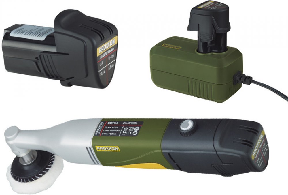 Aku leštící bruska WP/A je mobilní verze leštičky Proxxon WP/E, ale bez kabelu. Vhodná k dolešťování povrchů i na špatně přístupných místech, na lesklé plochy, čištění, odrezování, pro rozlešťování po lakování atd.