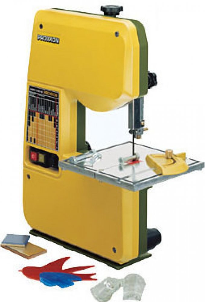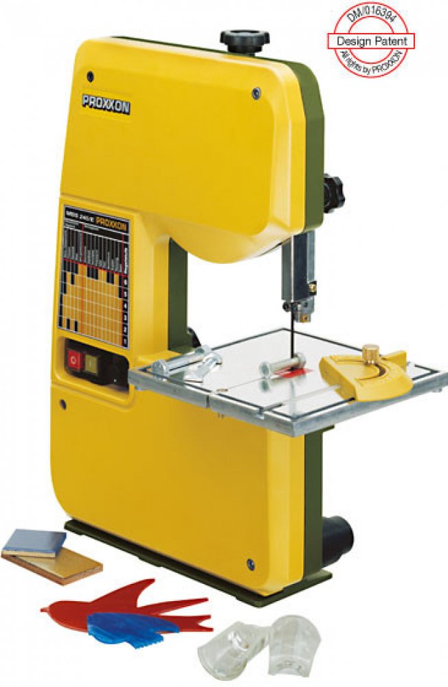 Tichý pohon 220 V motorem s ozubeným řemenem Optibelt. Elektronicky regulovaná rychlost pilového pásu zajišťuje vysokou čistotu řezu (bez dalšího opracování !). Přehledná tabulka udává rozsah rychlosti posuvu pásu pro obrobky různých materiálů. Ideální síla pilového pásu (5 x 0,4 mm) na jemné práce umožňuje zakřivené řezy s relativně malými poloměry.