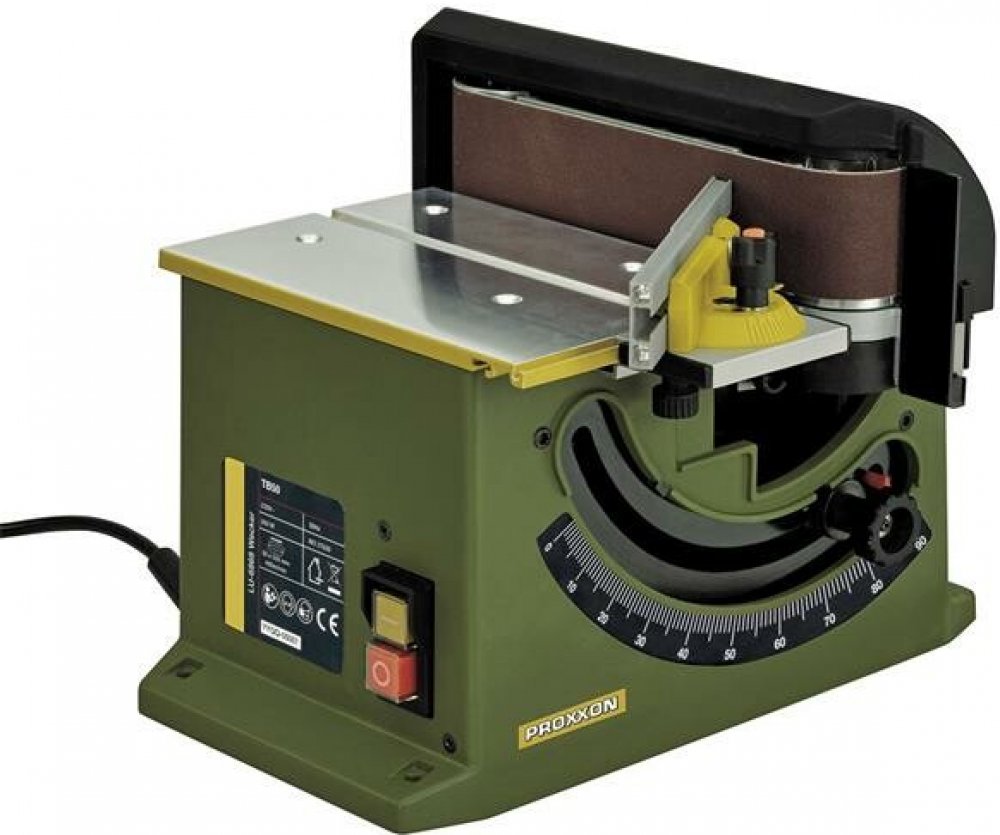 Vč. 3 ks brusných pásů (zrnitost 100, 180 a 240), posuvný úhlový doraz.