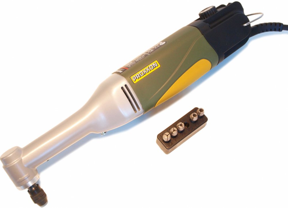 Úhlová vrtačka s dlouhým krkem LWB/E je přesný a tichý přístroj na jemnou práci ideální pro použití v úzkých štěrbinách, kam se s jinou mikrovrtačkou nedostanete. Úhlová mikrovrtačka LWB/E je určena zejména na řezání tyčového materiálu, vrtání, broušení, leštění, kartáčování, řezání a gravírování. Ideální pro jemnou mechaniku, modelářství, výrobu šperků, optiku, umělecká řemesla a elektroniku. Elektronicky regulovatelné otáčky na 3.000 – 15.000 ot./min. při téměř stejném krouticím momentu ve spodní oblasti otáček. Toto je velice důležité při jemném vrtání, kartáčování a leštění. Úhlová mikrobruska LWB/E je vybavena kleštinovými upínacími pouzdry, které jsou z kalené oceli, zaručující vysokou a trvalou pružnost. Neztrácejí ani po dlouhodobém používání svůj tvar a přesnost (nesrovnatelné s nekalenými, čtyř čelisťovými a podobnými kleštinami z mědi či hliníku). Přesná hřídel z broušené oceli je uložena v sestavě několika kuličkových ložiscích. Stabilní převodová skříň z hliníkového tlakového odlitku. Úhlová mikrovrtačka má výkonný 100 W tichý motor a plynulou regulaci otáček (velký výkon i při nižších otáčkách). Použitá technologie permanentních magnetů motoru dělá z tohoto přístroje velmi silné, výkonná, tiché a odolné mikronářadí. Tělo mikrovrtačky je vyrobeno z POLYAMIDU vyztuženého skelnými vlákny s měkkou složkou v úchopové části. Mikrobruska LWB/E je napájena z el.sítě, díky čemuž je lehčí, má kratší tělo a není limitovaná kapacitou AKU baterie, jako např. AKU Mikrovrtačka Proxxon IBS/A (obj.č. 29800). Doporučujeme ji proto použít zejmána při práci u pracovního stolu, do terénu si raději vezměte AKU nářadí Proxxon.