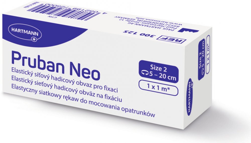 Pruban Neo elastický hadicový obvaz č. 2 (1 m, šíře 5 – 20 cm) nabízí stabilní fixaci krytí ran i při pohybu. Vysoce elastický, bezešvý a komfortní na nošení. Velikost 2 vhodná na zápěstí a kotníky.