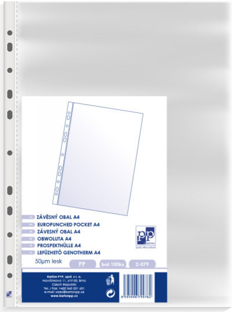 Průhledný obal A4 U 45my lesk eurozávěs lesklý 100ks (euroobal)