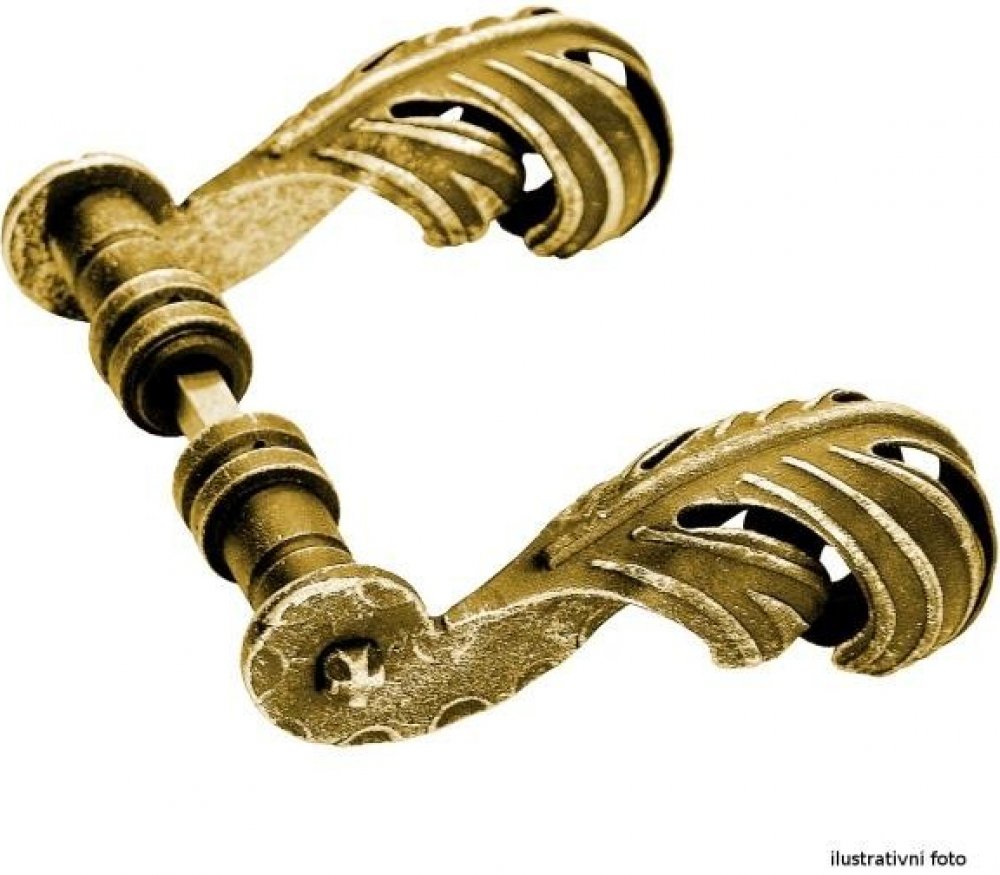 63.007 - Ozdobná klika kovaná, 1 pár Tuto kovanou kliku lze vhodně použít na ozdobení bran, vrat a dveří, ať již kovaných či běžných ocelových a dřevěných.