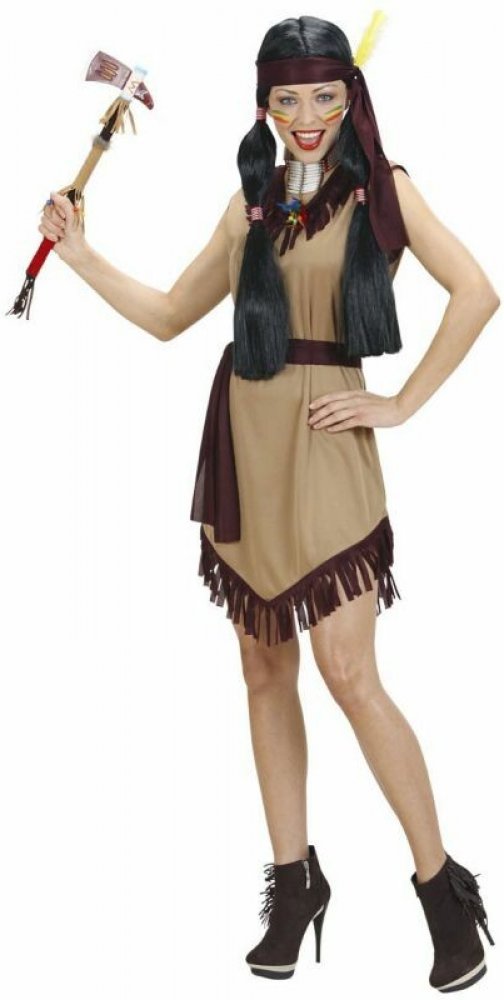 Oblečte si tento krásný indiánský kostým a staňte se součástí kmene! Kostým zahrnuje hnědé šaty s třásněmi, pásek a čelenku s typickým indiánským vzorem. Vyroben z lehkého a pohodlného materiálu (100% polyester), který vám umožní volný pohyb. Perfektní volba na karneval, maškarní ples nebo divadelní představení. Stačí přidat indiánský make-up a peříčka do vlasů a můžete vyrazit do boje!