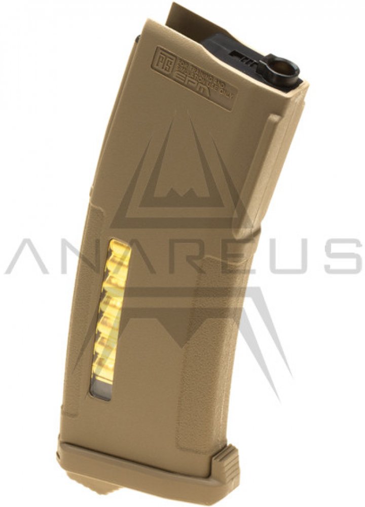 PTS Enhanced Polymer Magazine (EPM) je jedním z nejlepších tlačných zásobníků pro AEG pušky AR-15 Tokyo Marui s unikátním systém zpětného rázu Next-Gen Recoil Shock (NGRS) v designu MAGPUL M2/M3 30rds zásobníků. Tento zásobník nabízí 2 nastavení kapacity, a to reálných 30 nebo herních 120 BBs. Samozřejmostí je legendární spolehlivost podávání kuliček jako u všech PTS zásobníků.