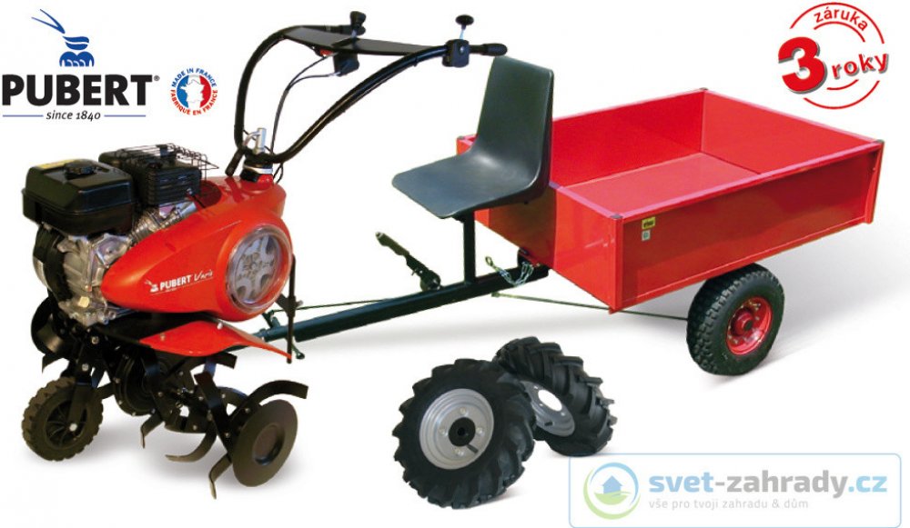 PUBERT VARIO 55P C3 Benzínový kultivátor + vozík VARES HV 220L + 2x šípová kola 450x10