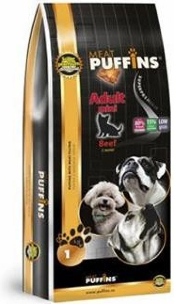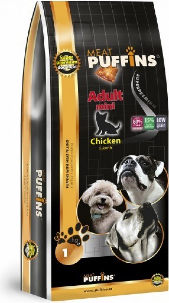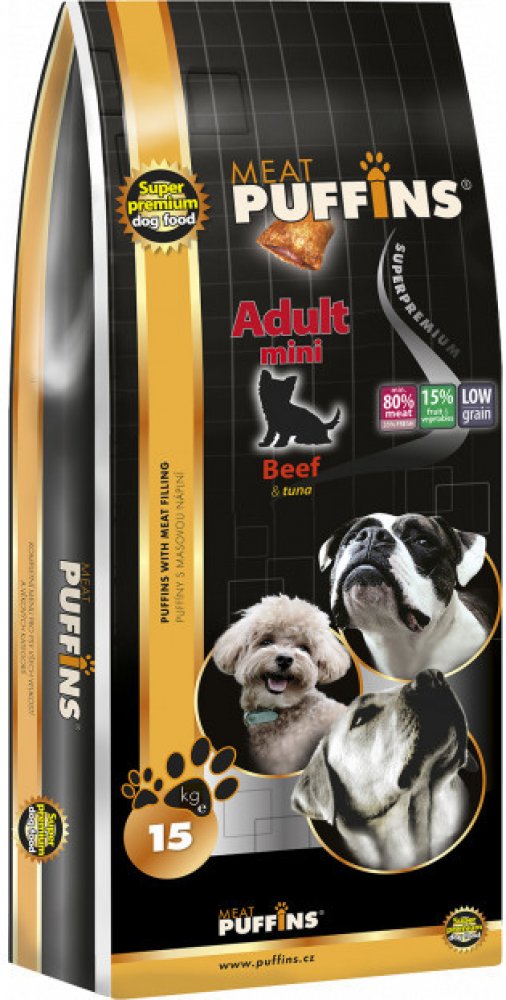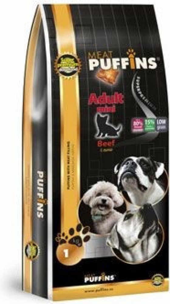 Puffins Dog Adult Mini Beef 1kg - Superpremiové krmivo pro psy s masovou náplní. Kompletní krmivo pro dospělé psy malých plemen. Čerstvé hovězí maso, tuňák a jehněčí. - Dopřejte mu víc...