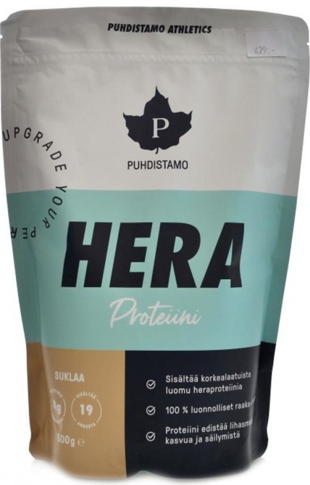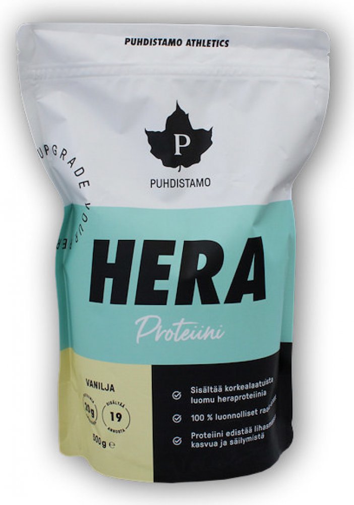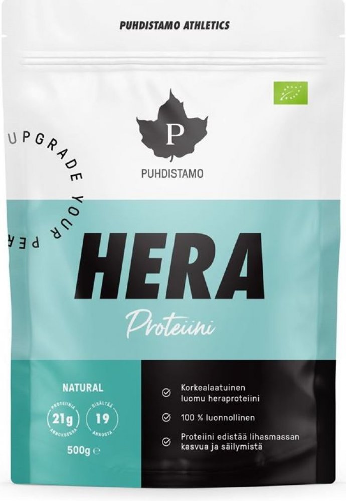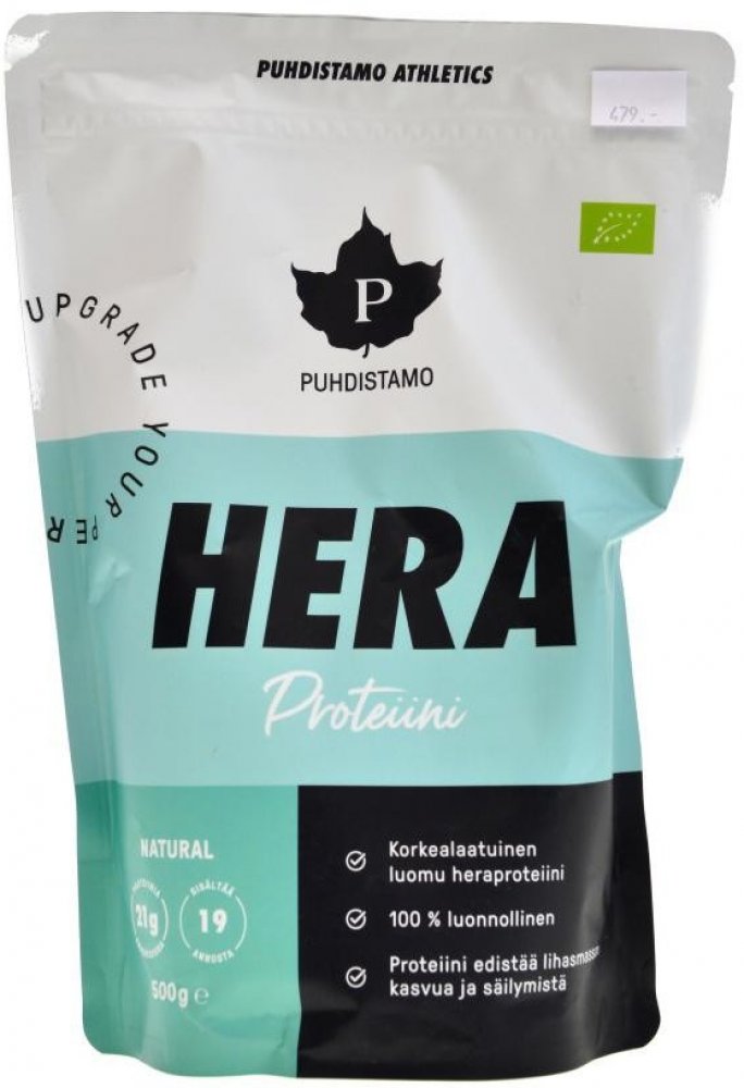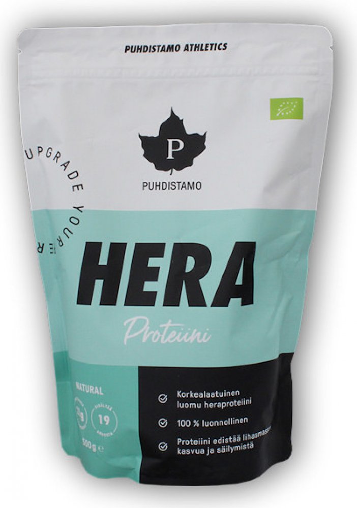 HERA je superprémiový BIO syrovátkový protein pocházející z volných pastevních odchovů (udržitelné zemědělství). V zimě jsou tyto chovy krmeny BIO krmivem, je tak garantována absolutní čistota výsledného produktu. Syrovátkový protein HERA (=syrovátka) je zcela bez hormonů, pesticidů a zbytků antibiotik. Také neobsahuje žádná uměla sladidla (sukralózu, aspartam, acesulfam,...) nebo jiné syntetické přísady.