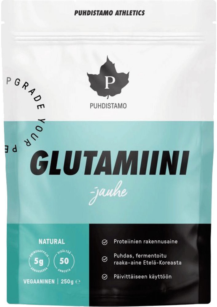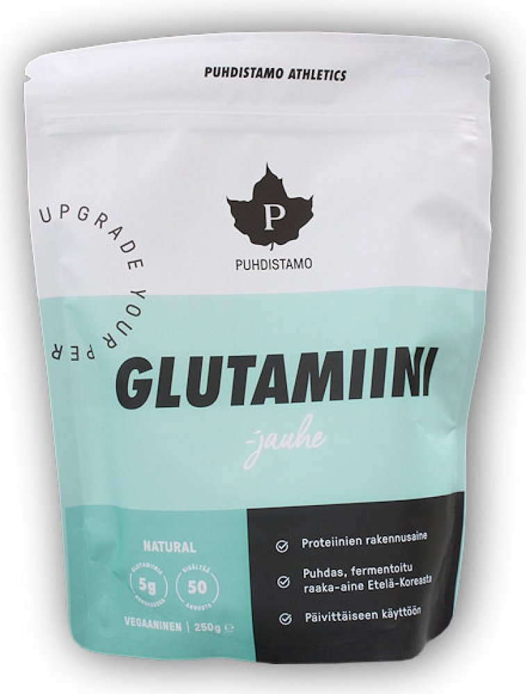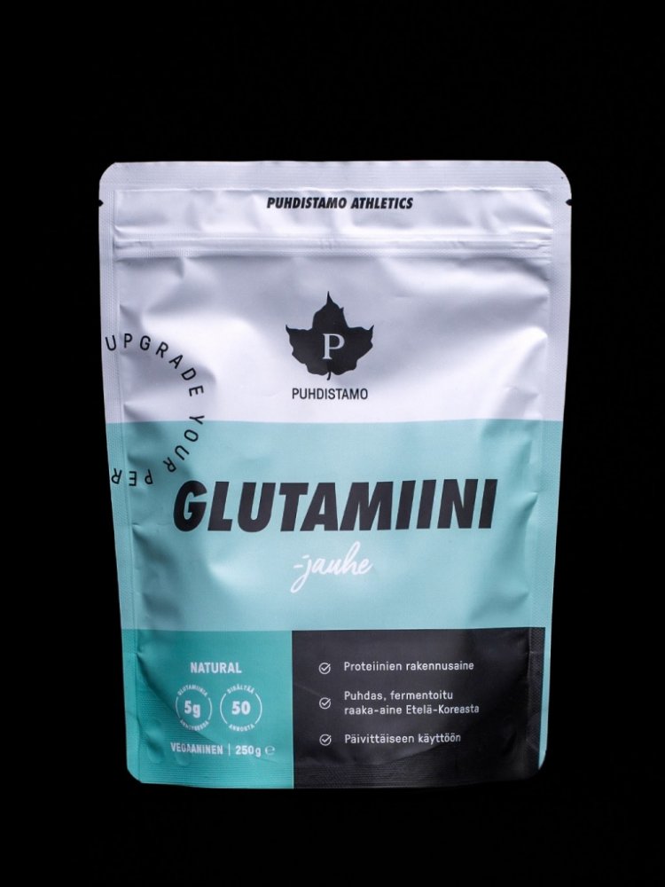Glutamin obsažený v doplňku je získaný fermentací a pochází z Jižní Koreje. L-glutamin Puhdistamo neobsahuje umělá ani žádná přidaná syntetická aditiva.