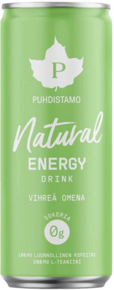 Natural energy Drink Puhdistamo je striktně přírodní povzbuzující nápoj se zcela minimální energetickou hodnotou (3kj / 100 ml). Je slazený pouze steviol-glykosidy a obsahuje přírodní extrakty s povzbuzujícím účinkem, které kromě posílení vitality pomáhají i s koncentrací a oblastí tvorby buněčné energie.
