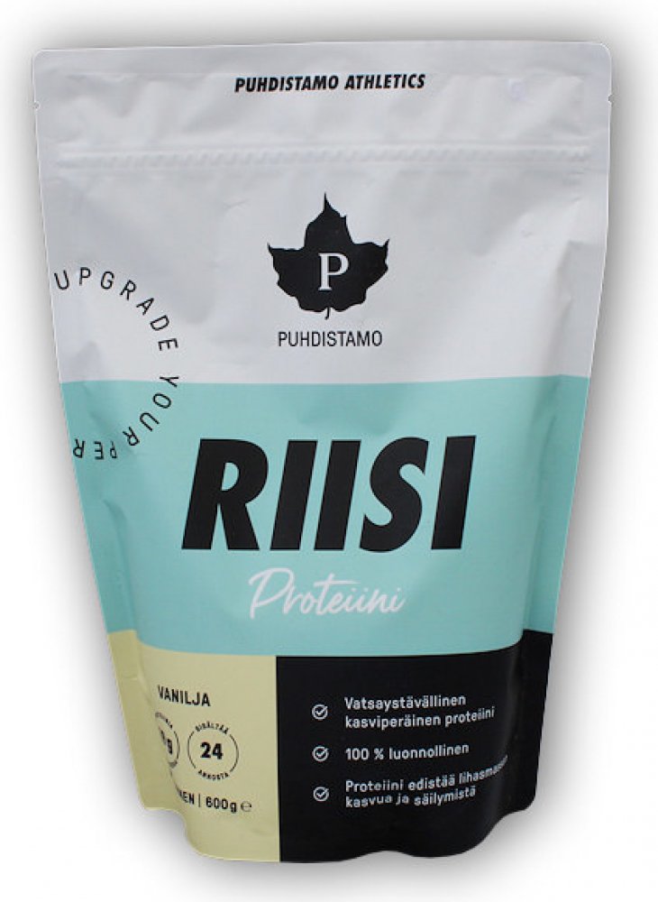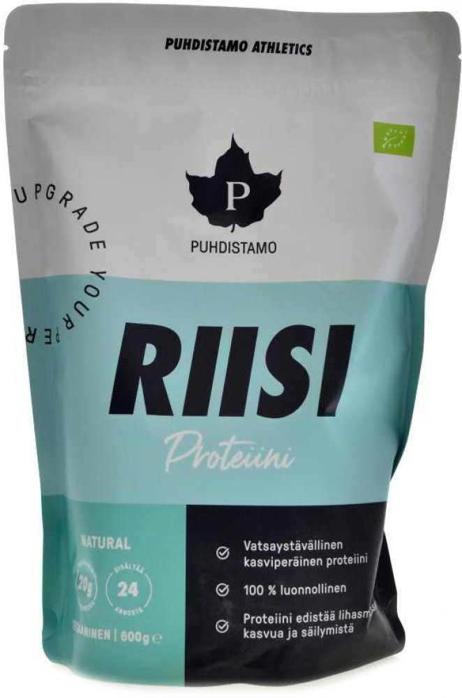 Rice Protein Puhdistamo je prémiový protein vyrobený z celozrnné naklíčené rýže v BIO kvalitě. Oproti proteinu z rýže zbavené slupky a klíčku obsahuje mnohem vyšší množství mikronutrientů. Rice Protein Puhdistamo navíc pochází z rýže naklíčené, kde je obsah mikronutrientů ještě dále přirozeně navýšený.
