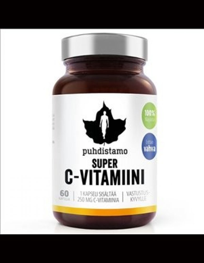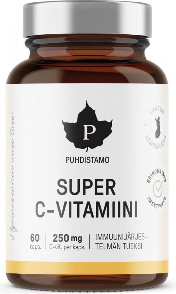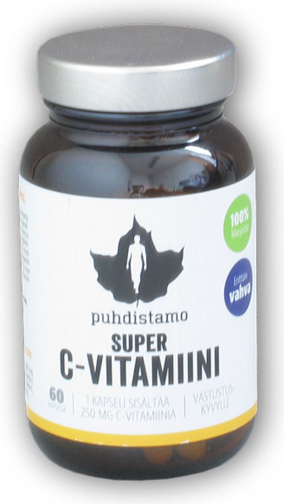 Puhdistamo 60 tbl kapsle imunita unisex 1000 g Puhdistamo pro dospělé perorální od 3 let bez příchutě Finsko vitamín C imunita a obecné zdraví 15–60 250.0 mg Kdykoliv 1–4× za den Chladné + suché + tmavé místo, Mimo dosah dětí