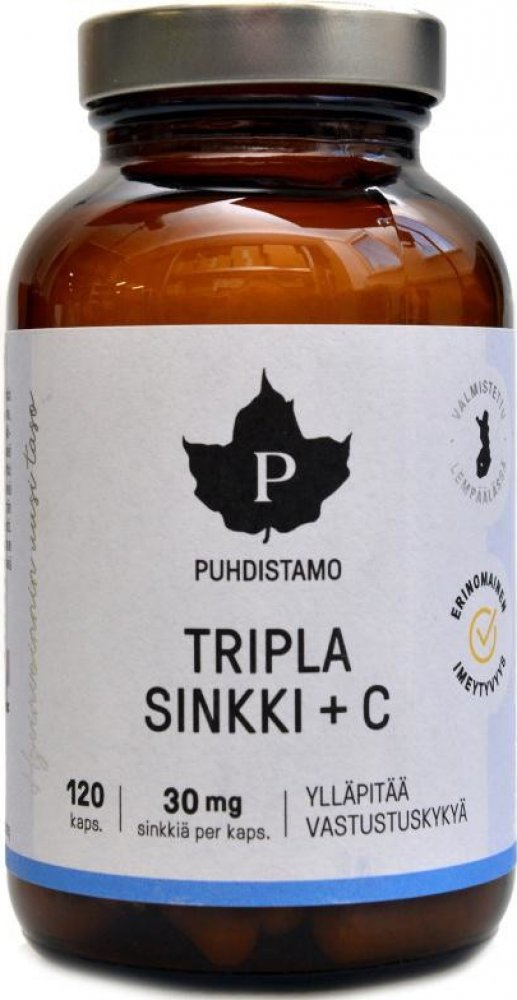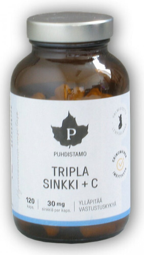 Puhdistamo 120 tbl kapsle imunita unisex 78 g Puhdistamo pro dospělé perorální od 3 let bez příchutě Finsko zinek imunita a obecné zdraví 120 25.0 mg Kdykoliv 1 za den Suché místo + pokojová teplota, Mimo dosah dětí s vitamínem C