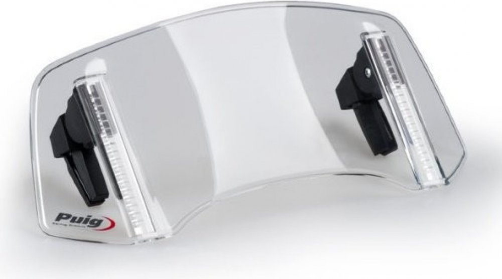 Regulovatelný deflektor pro větrné štíty Puig Clip-On 2.0 20764 (nasazovací - bez vrtání) Rozměr: (VxŠ): 130x300mm Vhodné pro plexi štíty o tloušťce 3-5mm.Vzdáleností mezi úchyty 200 mm, aby nerušilo výhled skrz.Lze nastavit 4 úhly sklonu a posun na výšku umožňuje pohyb 10cm nahoru/dolů. Stavitelné přídavné plexi PUIG vyrobeno podle nejnovějších technologií ze vstřikovaného polykarbonátu s úpravo...