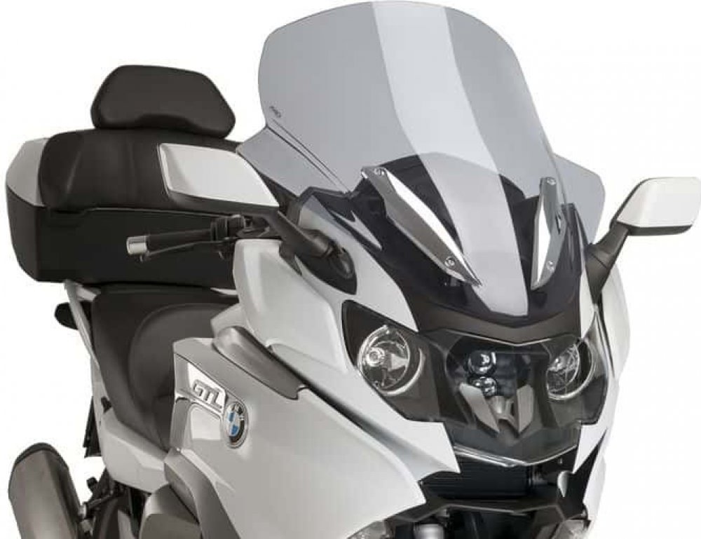 Motocyklový plexi štít Puig TOURING 9512 (nahrazuje Puig 7525)BMW K1600 Grand America (2018-2023)BMW K1600 GT (2011-2023)BMW K1600 GTL (2011-2023)BMW K1600B (2018-2023)BMW R1200RT (2014-2018)BMW R1250RT (2019-2020) Rozměry (VxŠ): 695 x 680mm. O 105mm vyšší než originál (poměřeno na výšku plexi bez ohledu na zakřivení).Tloušťka: 4mm Všechny štíty PUIG jsou homologované a vyrábí se v několika barevných odstínech Kouřová (H): Cca 20-30% zatmavení Tmavá (F): Cca 60-70% zatmavení Plexi PUIG jsou vždy dodávána včetně montáže potřebné k uchycení na originální provedení motocyklu (může např. být nutné použít originální šrouby). Seznam přiložených dílů naleznete v montážním návodu. V tomto případě se používá originálního uchycení. Plexi jsou vyráběna pomocí nejpokročilejších technologií, s použitím 4mm silného akrylového materiálu, s UV ochranou a s 2mm zaobleným okrajem. Povrchová úprava splňuje předpisy německého TÜV. montážní návod originální stránky Puig srovnávací studie aerodynamický test video - aerodynamický test pro K1600GTL