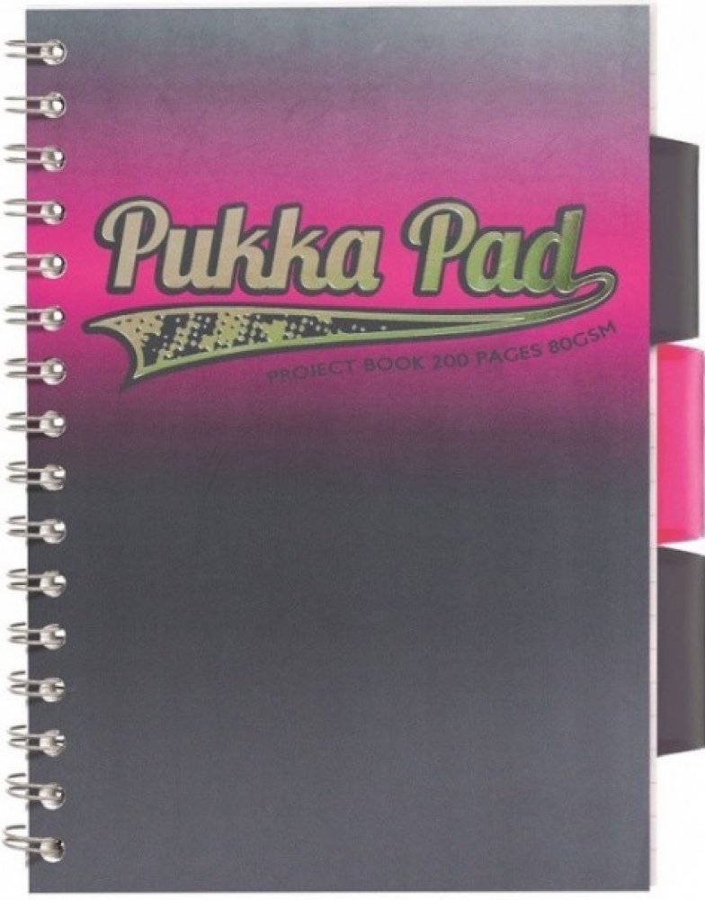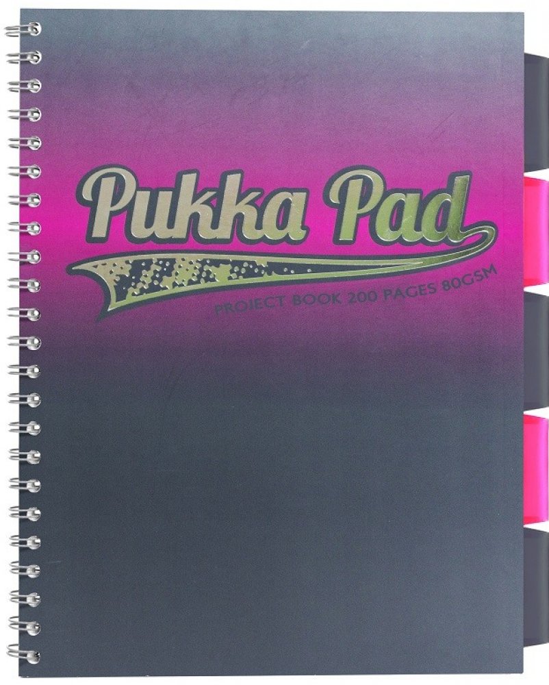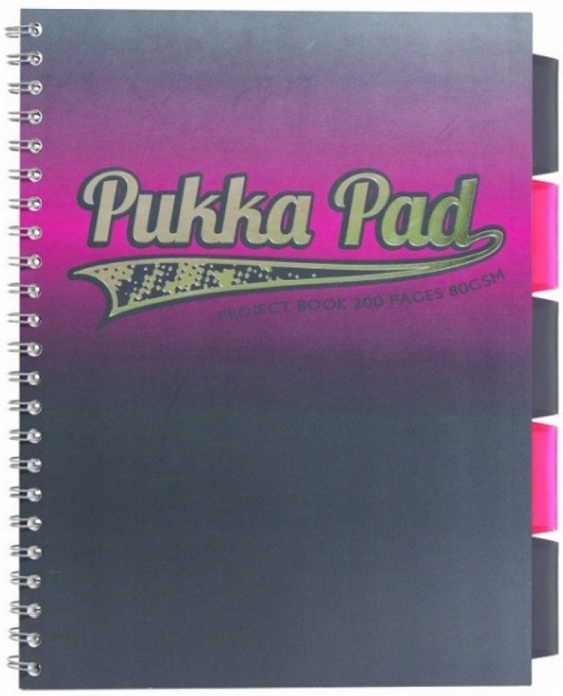 Projektový blok Pukka Pad Elektra formátu A4, růžový 200 stran, linky 8 mm, růžový Projektový blok s boční spirálou obsahuje 100 listů s linkami 8 mm a 5 barevných vyjmutelných rozlišovačů pro lepší orientaci. Barevné rozlišovače obsahují vnitřní kapsy na nadpisy, poznámky, apod.
