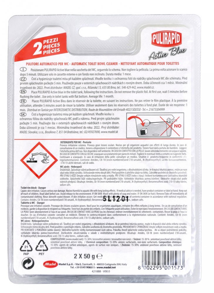Pulirapid Active Blue tableta do WC splachovačů 2 ks