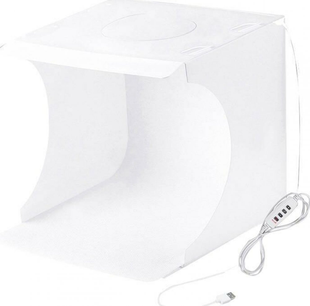 Díky chytré konstrukci stanu můžete fotografovat z různých úhlů i shora, což umožňuje speciální otvor. Výrobek je napájen pomocí kabelu USB. To znamená, že jej můžete připojit nejen k nabíječce, ale také k powerbance nebo dokonce k počítači či notebooku. Díky rozměrům 23 x 23 x 24 cm a tomu, že stan lze rychle složit, je jeho přeprava báječně snadná a pohodlná.