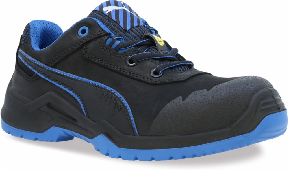 ARGON BLUE LOW z TECHNICS LINE. Linie od PUMA SAFETY se vyznačuje vysokou flexibilitou a nápadnou lehkou konstrukcí. Toho je dosaženo architekturou podešve natural FLEXMOTION®. Kombinuje koncept „Natural Running“ s nejnovější technologií bezpečnostní obuvi. Bezpečnostní bota S3 s vlastnostmi ESD z naolejované nubukové kůže je vybavena vysoce trvanlivou špičkou ze skleněných vláken a ochranou proti perforaci FAP®. Vložená stélka Evercushion® BA vyrobená z pěny s otevřenými póry odvádí pot z chodidla a společně s prodyšným funkčním obložením BreathActive poskytuje pohodlné klima chodidla po celý den. Speciálně vyvinutý profil podrážky zaručuje nejlepší možnou přilnavost, zejména na hladkých průmyslových podlahách.