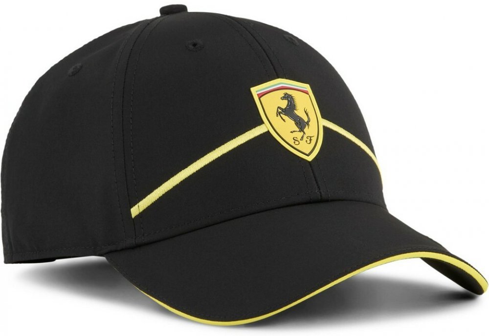 Sportovní, pětipanelová BB čepice z řady Motorsport Ferrari, vyrobena z recyklovaného materiálu, zdobena logem Ferrari.