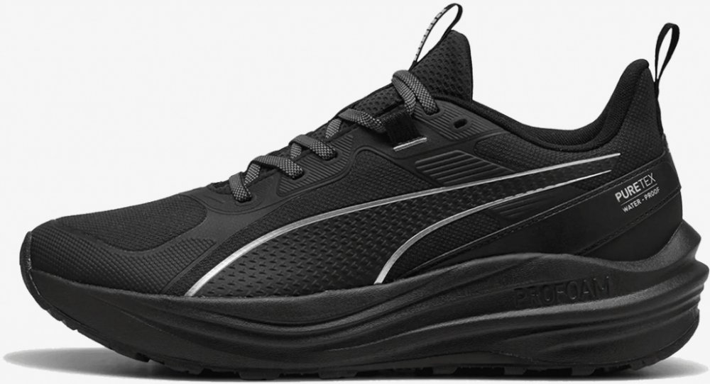 Puma sportovní síťovina jarní/podzimní nízká se středním tlumením nepromokavé outdoorové černá na tkaničky trailové
